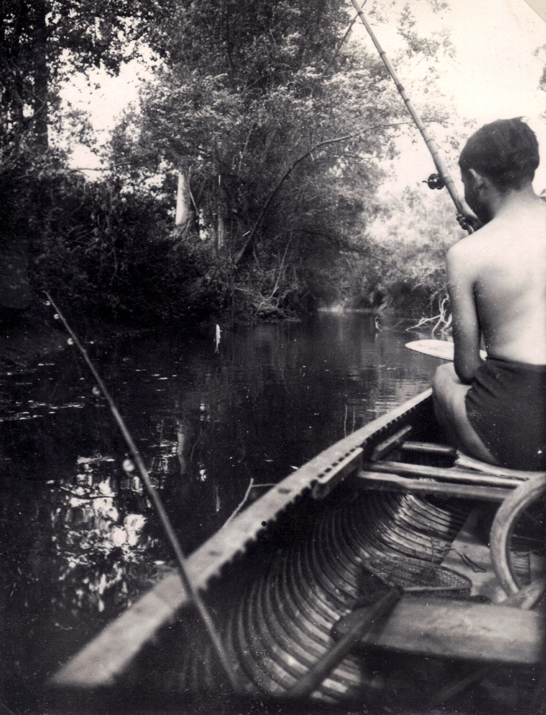 Bonne embarcation : souple, légère. Nous prospections bientôt les rives et pendant que Jean monte sa ligne, je prends traitreusement un premier goujon.