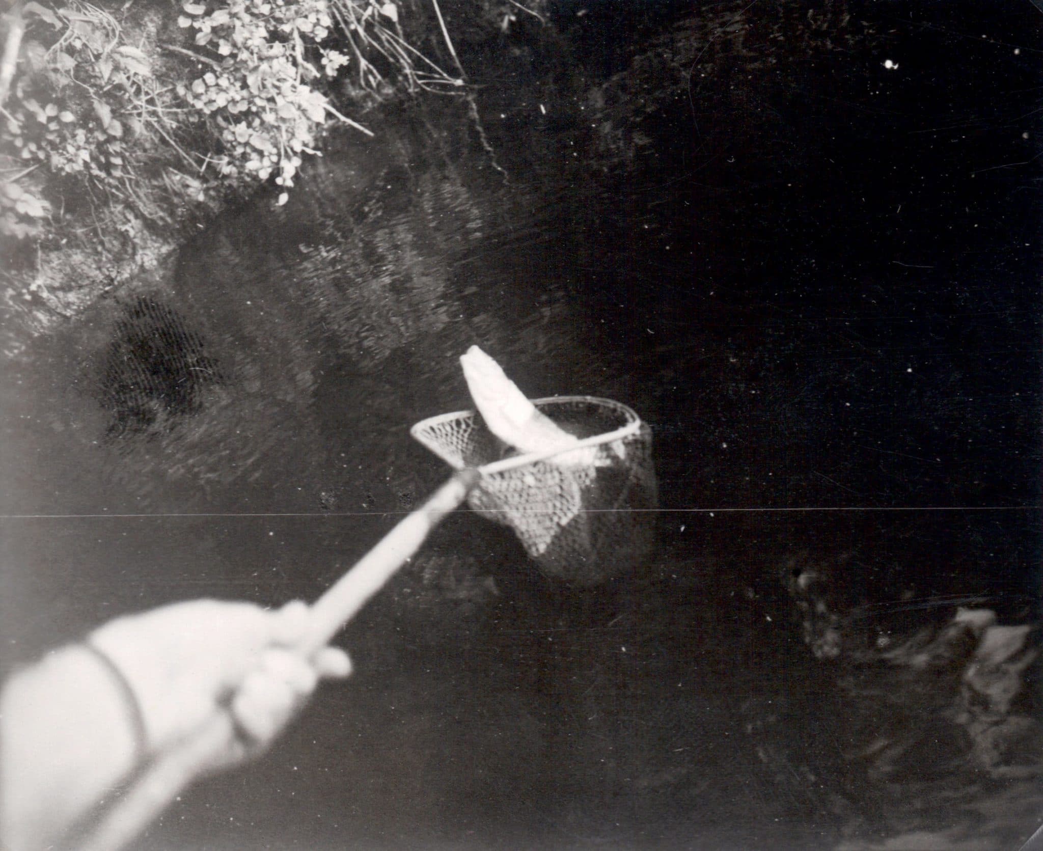 Sans la quitter des yeux (ma parole on croirait que je veux la fasciner !) ma main va chercher mon épuisette dont le filet trop sec refuse de s’enfoncer dans l’eau, surtout avec cette végétation !
