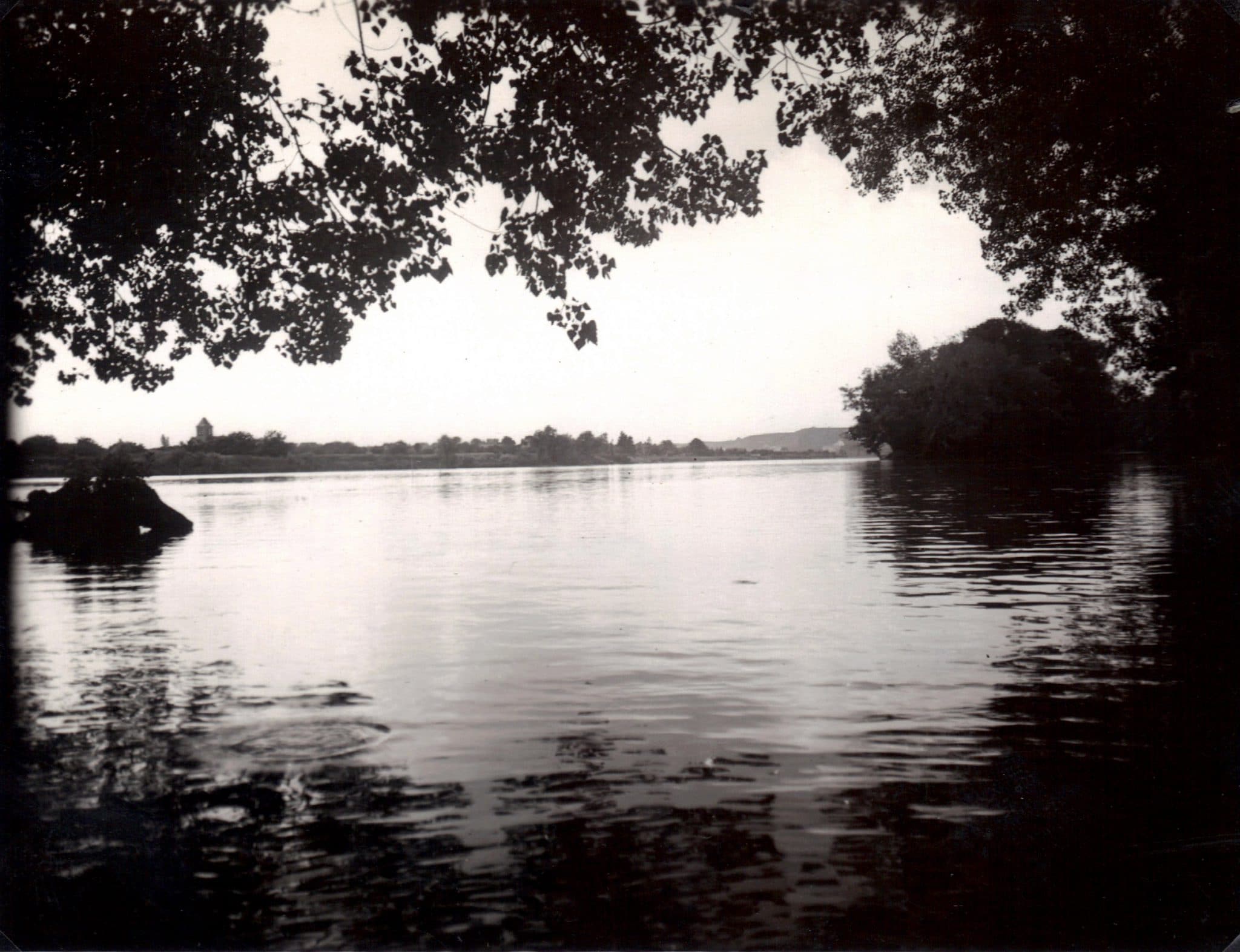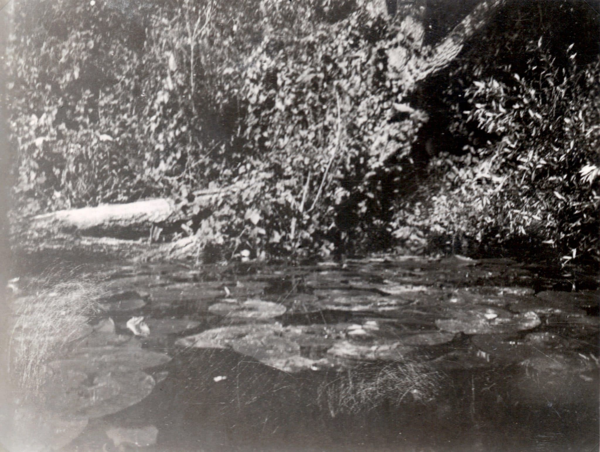 Soudain, un bruit derrière moi : une poule d’eau à 10 mètres ! Je glisse une main silencieuse vers mon kodak, je l’ouvre et faisant demi-tour au canoë… j’aperçois mon volatil qui prend le large. Vite ! une photo à la volée… que donnera-t-elle !