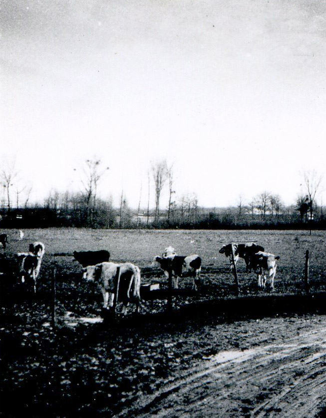 Bientôt nous arrivons devant une clôture qui limite une prairie où paissent des vaches… ou des taureaux ? Jean et moi sommes médiocrement attirés par la tauromachie, cependant, à la vue du détour à faire si nous ne coupons pas cet herbage (que nos imaginations transforment déjà en arènes sanglantes) nous résout à faire acte de courage bien involontaire d’ailleurs.