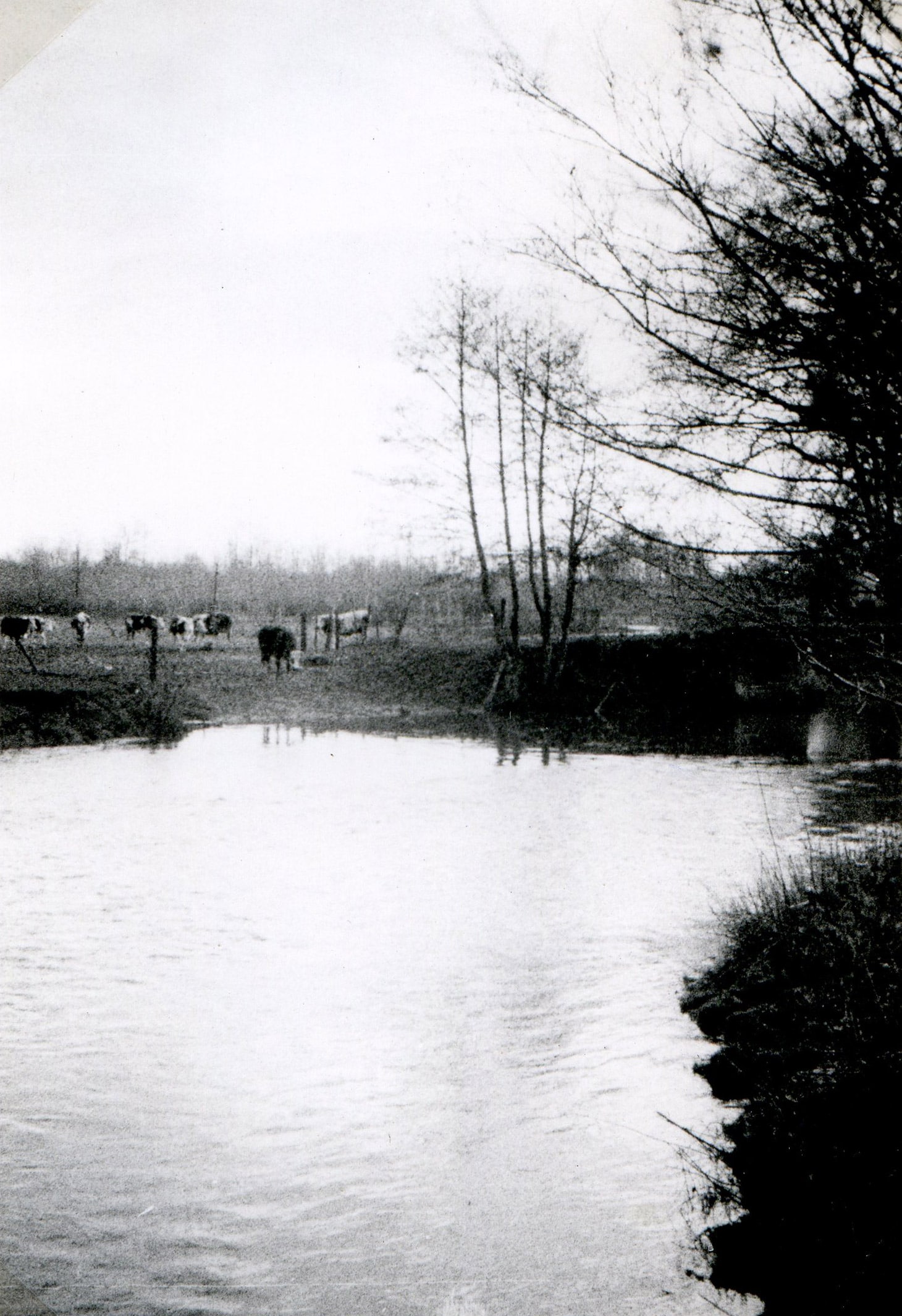 Voici un moulin assez joli et, nous aventurant sur une digue, nous arrivons à un coin où ce remous est bien prometteur et d’où nous avons, dans tous les cas, un point de vue épatant sur l’herbage que nous venons de traverser si piteusement.
