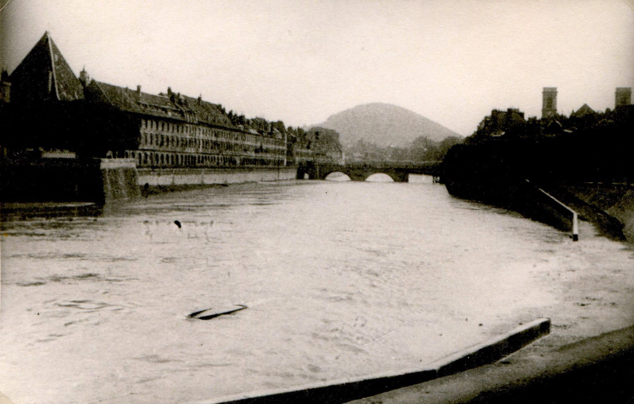 Despite the omens of death with which we are gratified by the spectators who seem quite stunned to see us take on water in such a flood, we embark immediately which means that we will know practically nothing about the City of Besançon which seems pretty as far as I see it: the Flying Gate, the Rue Battant, the Rue du Petit Battant, the Pont Battant.