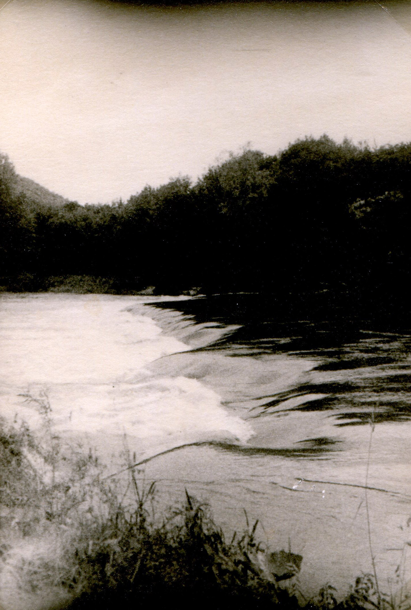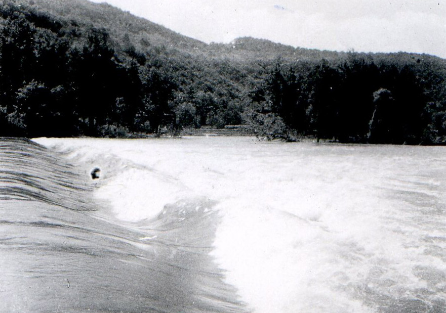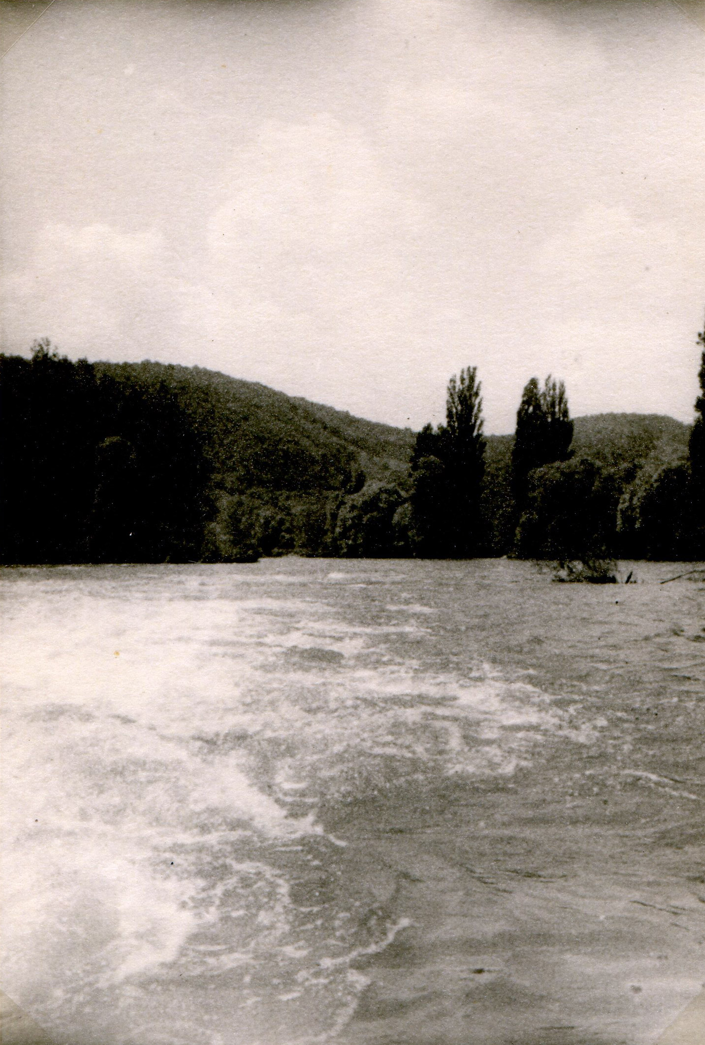 June 16 – As soon as lunch is over, we will carry out an in-depth reconnaissance of the Gouillé Dam, which we barely saw last night. It's still too big a chunk for us, I decided; at its foot a threatening eddy is hollowed out. Downstream, the water, indignant at the hindrance that man imposes on it, manifests its anger in multiple waves and countercurrents. To think that yesterday, I had judged "this" to be crossable! It is true that the river having descended, the difference in level must be more pronounced than yesterday. I capitulate once again. Even going to the rope would be difficult with the speed of the current, maybe even impossible.