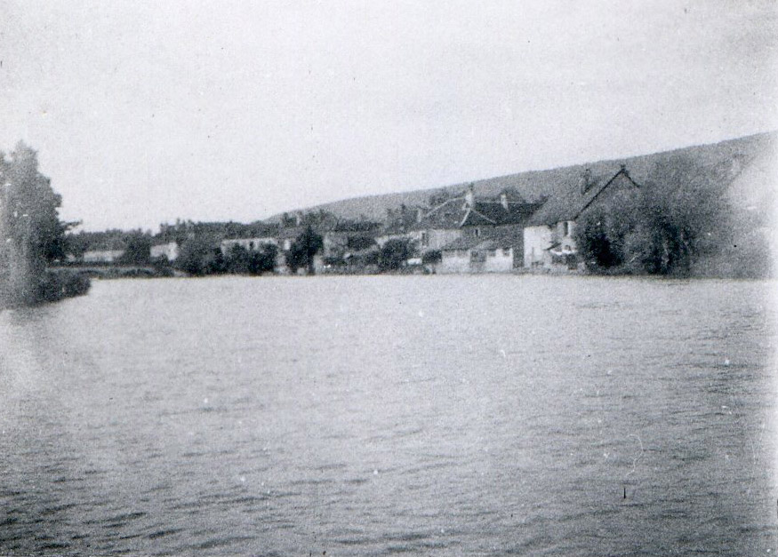 After a refreshment in Parcey, at the bakery – grocery store – fishing tackle – perfumery – haberdashery – refreshment bar where the M.P. was a great success of curiosity, we left for Dôle and the Doubs, about 8 km away. Before our departure, we met our Swiss to whom we explained our failure in front of the Goubaux.