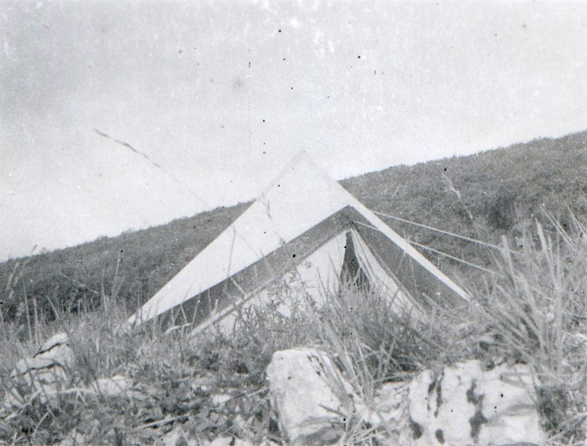 The tent erected, we inaugurated a new mosquito net and we also tried this first evening a new way of sleeping which would give me complete satisfaction provided that I shrank by about twenty centimeters, the tips of my legs looking clearly embarrassing.