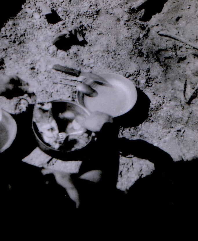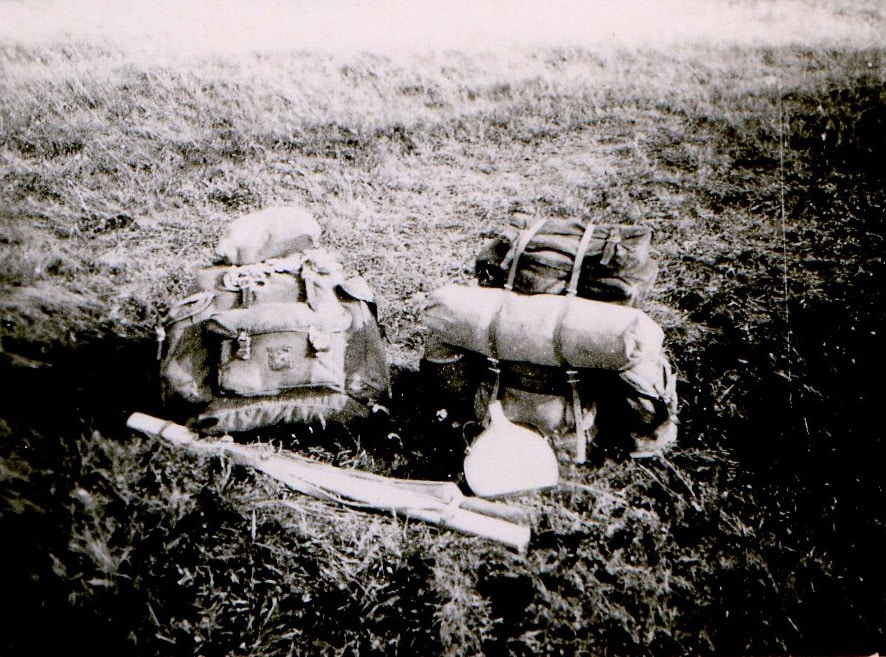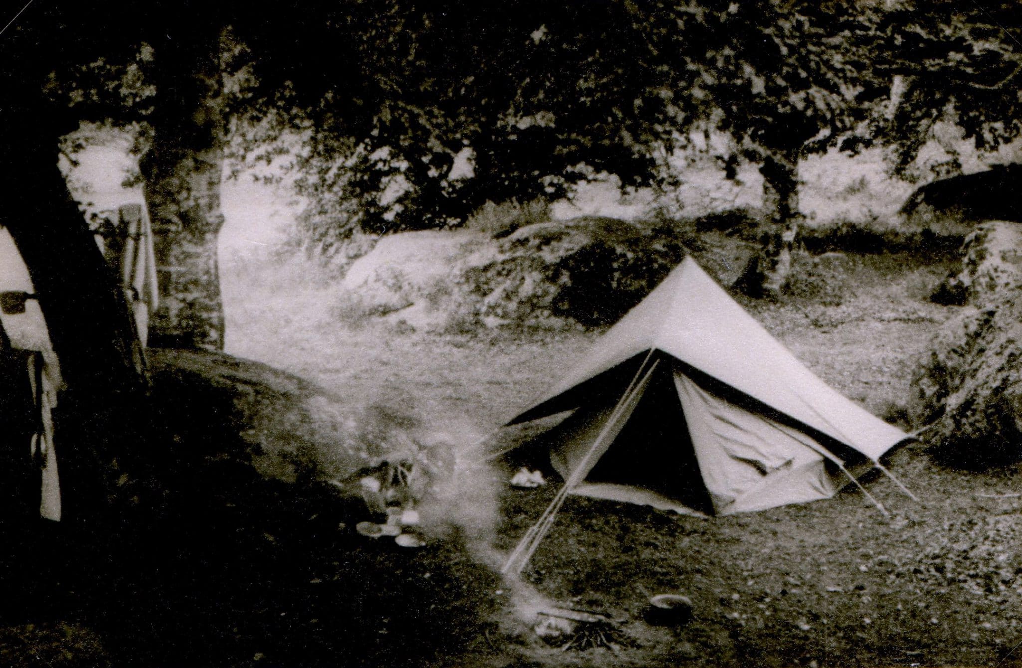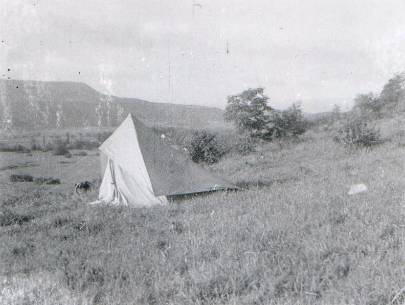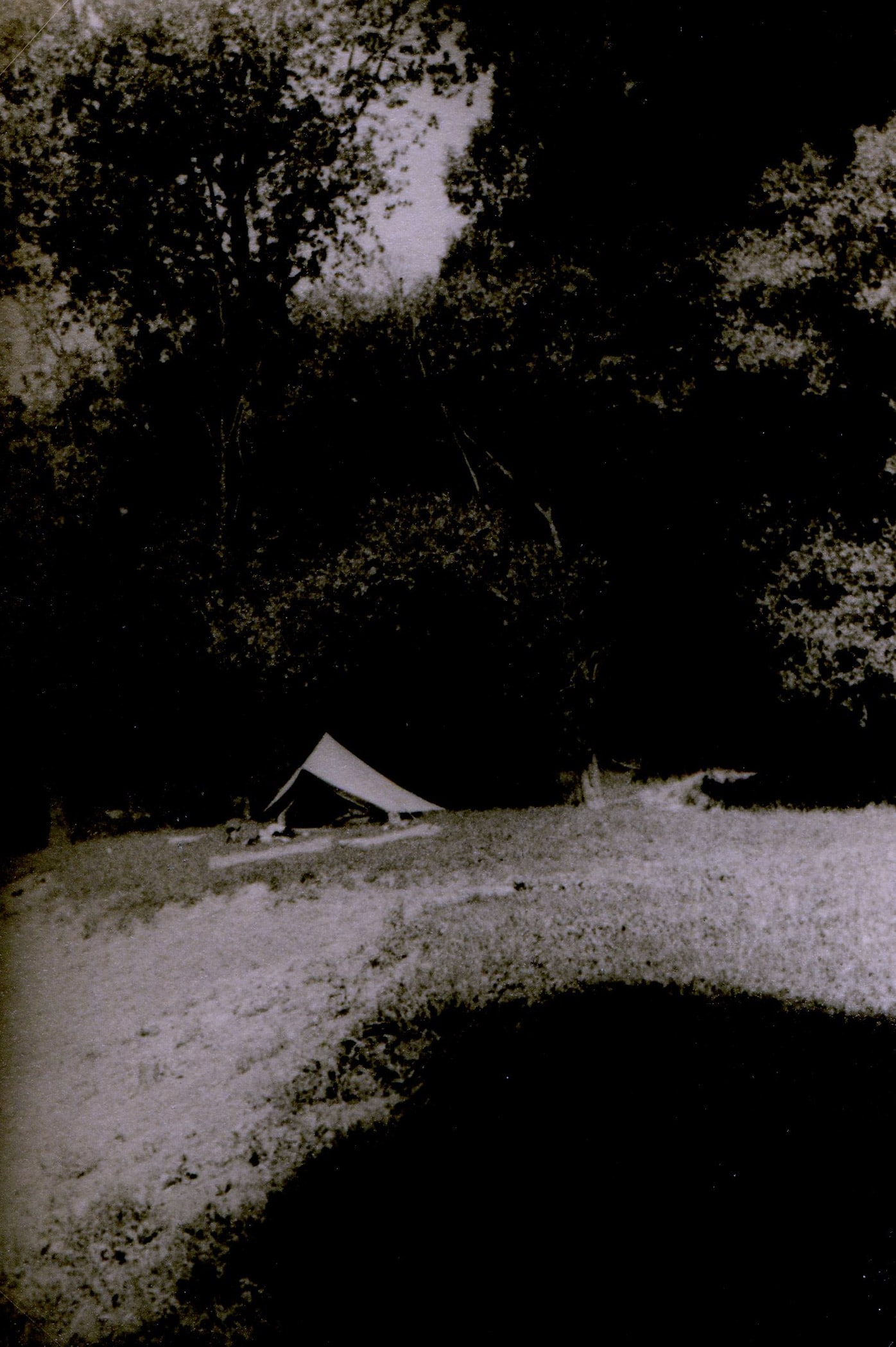 A hot lunch revives us and while Jean turns the things over to dry them like meat on the grill, I try a few photos with my Gallus which seems dry. Unfortunately, the same is not true of Jean's Kodak Brownie, which seems to have suffered from his dive.