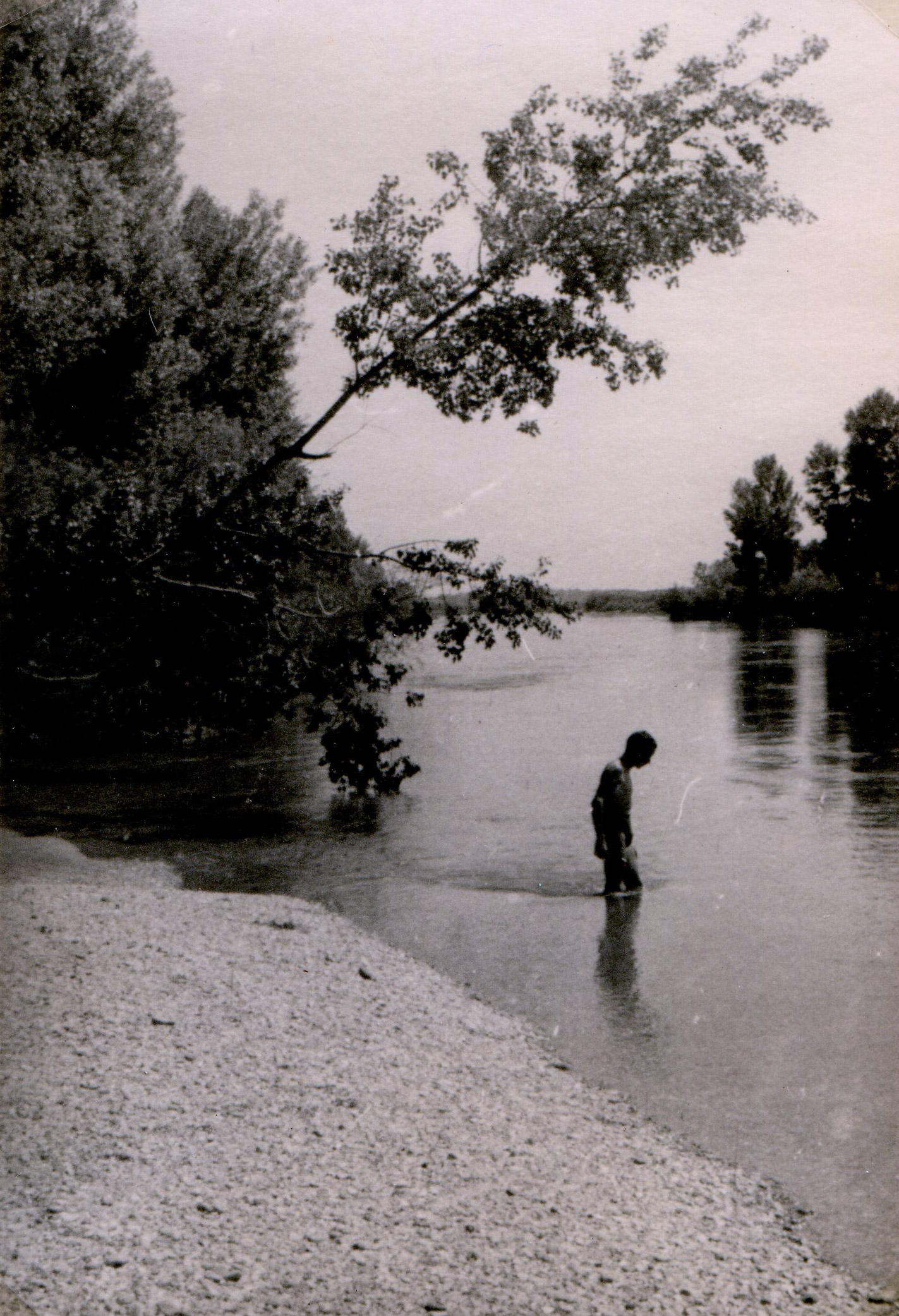 I caught up with the two paddles which, fortunately, did not drift in the current. Without success we try to get back into the canoe ( Later experience will show us the uselessness of this manoeuvre, a Canadian full of water does not sink but is as unstable as a barrel ), and all of a sudden I feel the bottom.