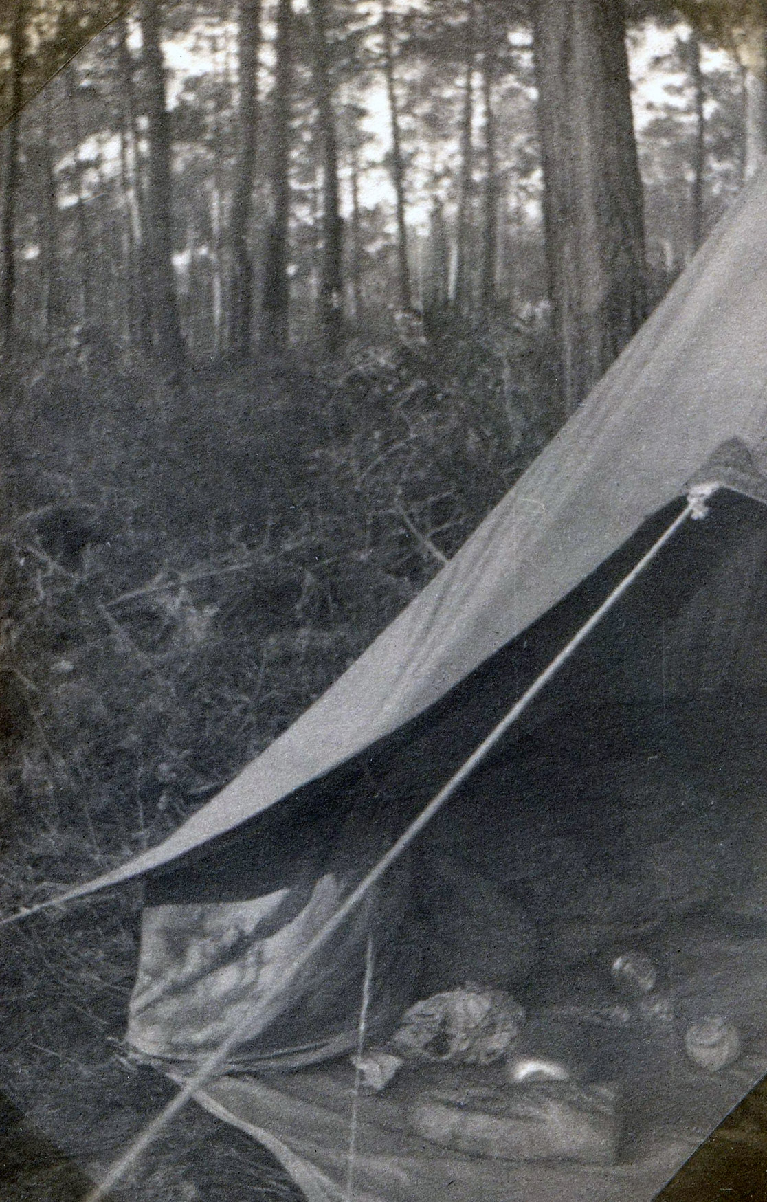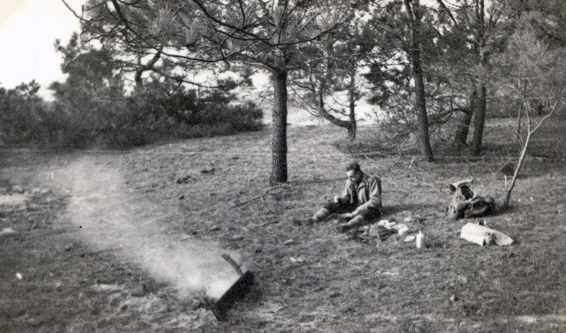 A l’abri de quelques arbres, dans l’intérieur je prépare mon déjeuner. Ce n’est pas le bois sec qui manque ! ni les risques d’incendie avec ce tapis d’aiguilles de pins si merveilleusement sèches qu’il m’arrivera d’allumer mes feux avec facilité sans le moindre papier.