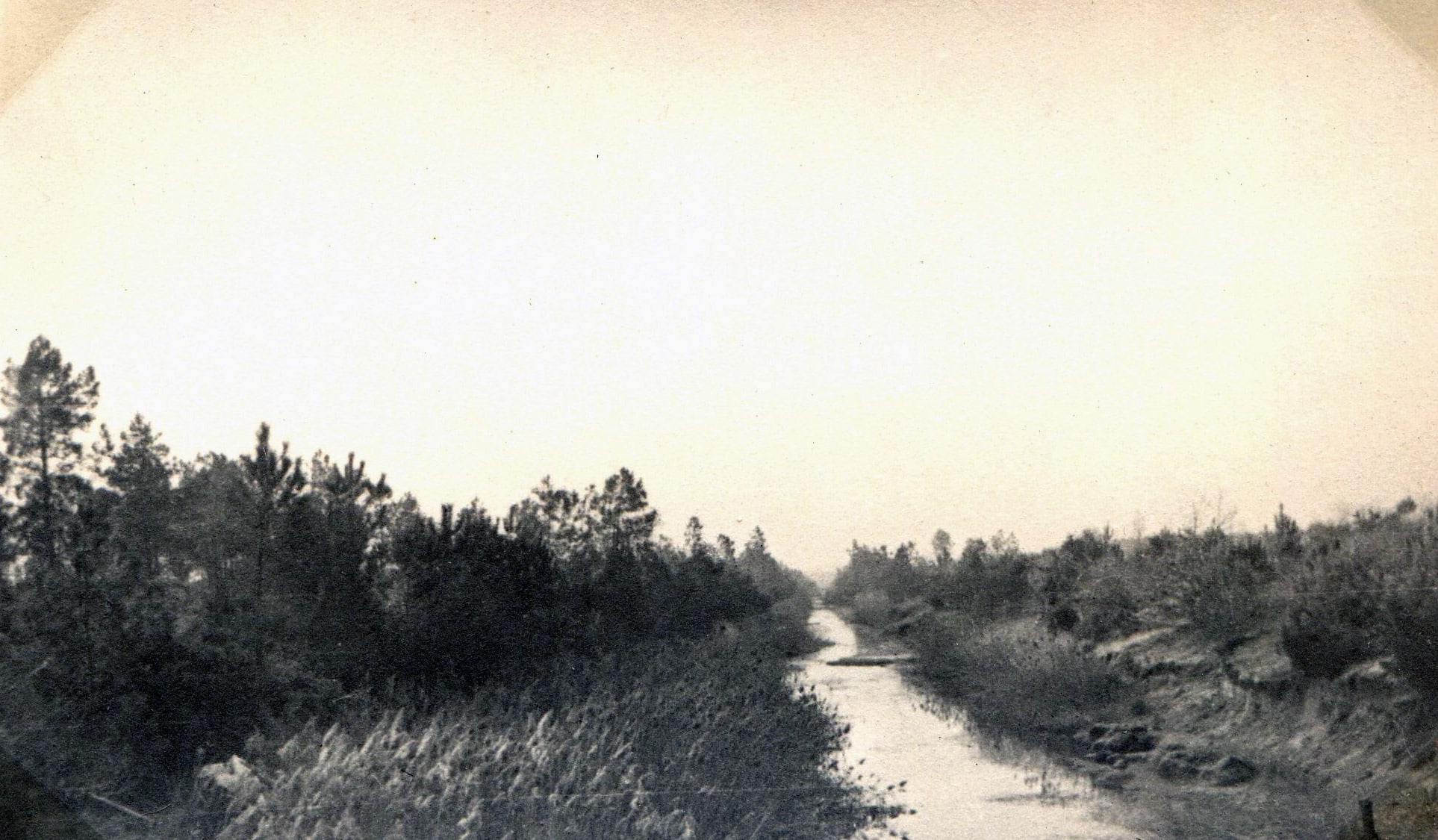 Après une traversée de quelques kilomètres d’une plaine nue qui donne un aperçu de l’aspect des Landes, du temps où elles méritaient leur nom, j’aborde la forêt qui commence juste après le canal unissant les étangs intérieurs entre eux.