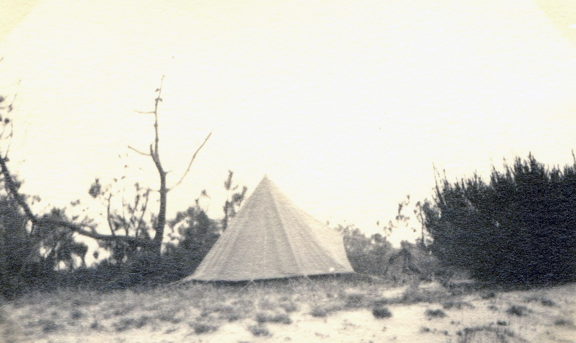 Sous la tente, un bruit bizarre m’intrigue et se reproduit souvent : une sorte de bruissement d’ailes. Malgré la lune qui éclaire assez bien je ne puis distinguer le moindre oiseau alors que le bruit passait très proche. Le vent produirait un bruissement plus régulier. Alors ? Je conclus, très logiquement, au voisinage d’anges qui se promènent invisibles à mes yeux humains (Le lendemain, je constaterai que des bandes d’oiseaux innombrables volent presque invisibles tant ils sont hauts, mais audibles cependant.).