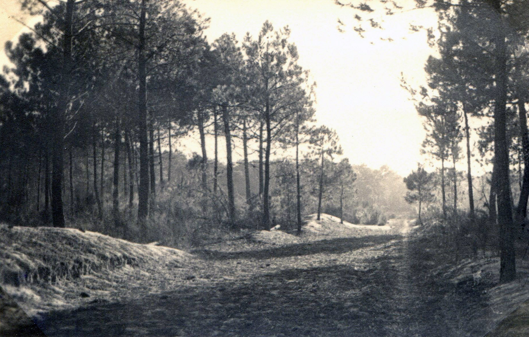 Au petit jour je débarque et il fait assez clair pour que je me rende compte que le ciel est dégagé. Et tout de suite, je suis saisi par une pénétrante odeur de résine : odeur typique des Landes auquelle on s’habitue si vite qu’elle disparait en peu de temps. Mais maintenant la résine évoquera toujours pour moi la vadrouille landaise qui débute aujourd’hui.