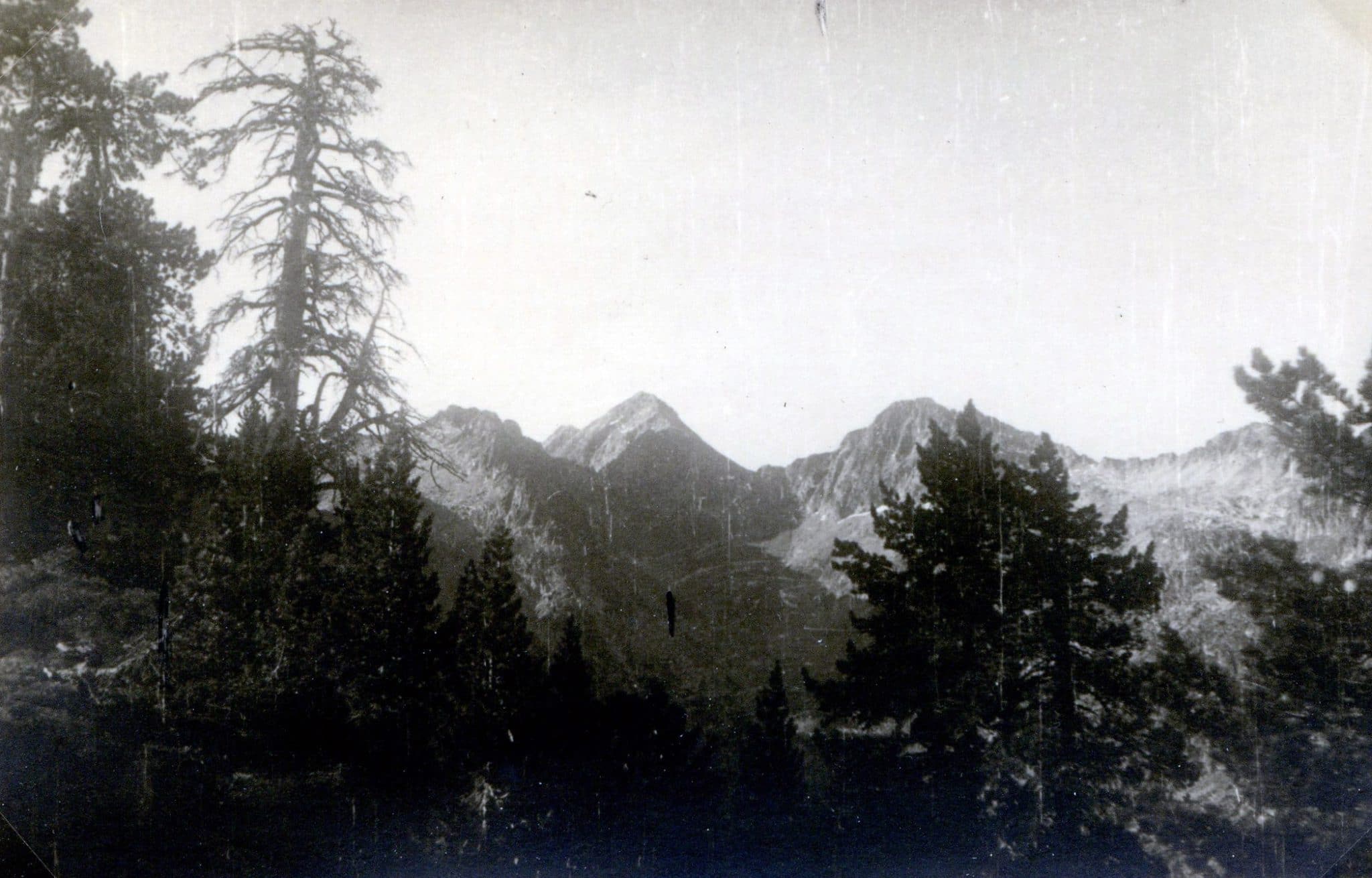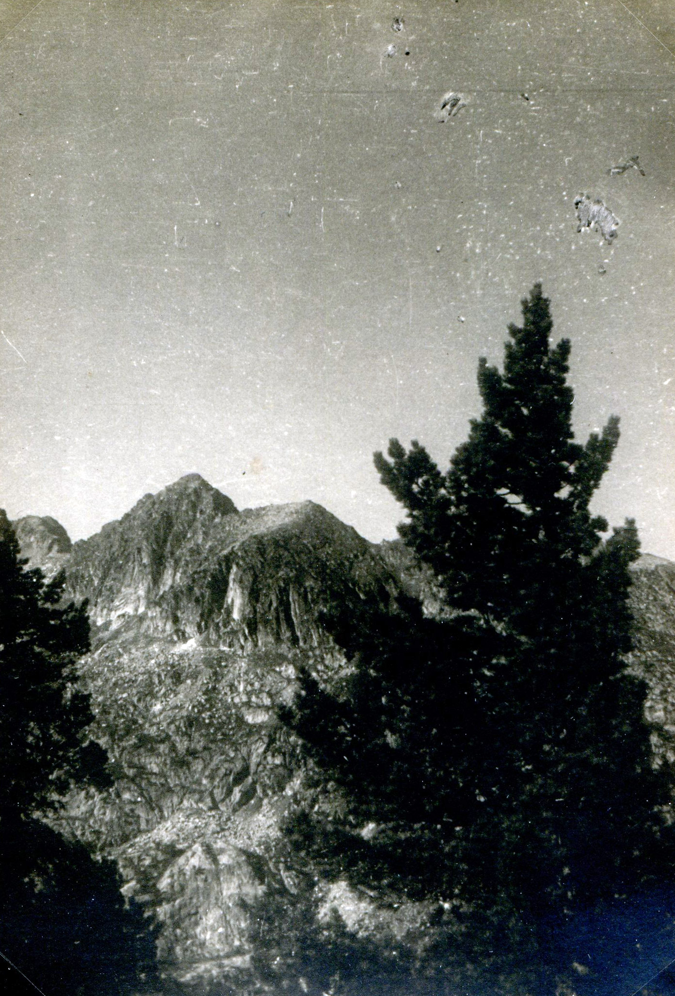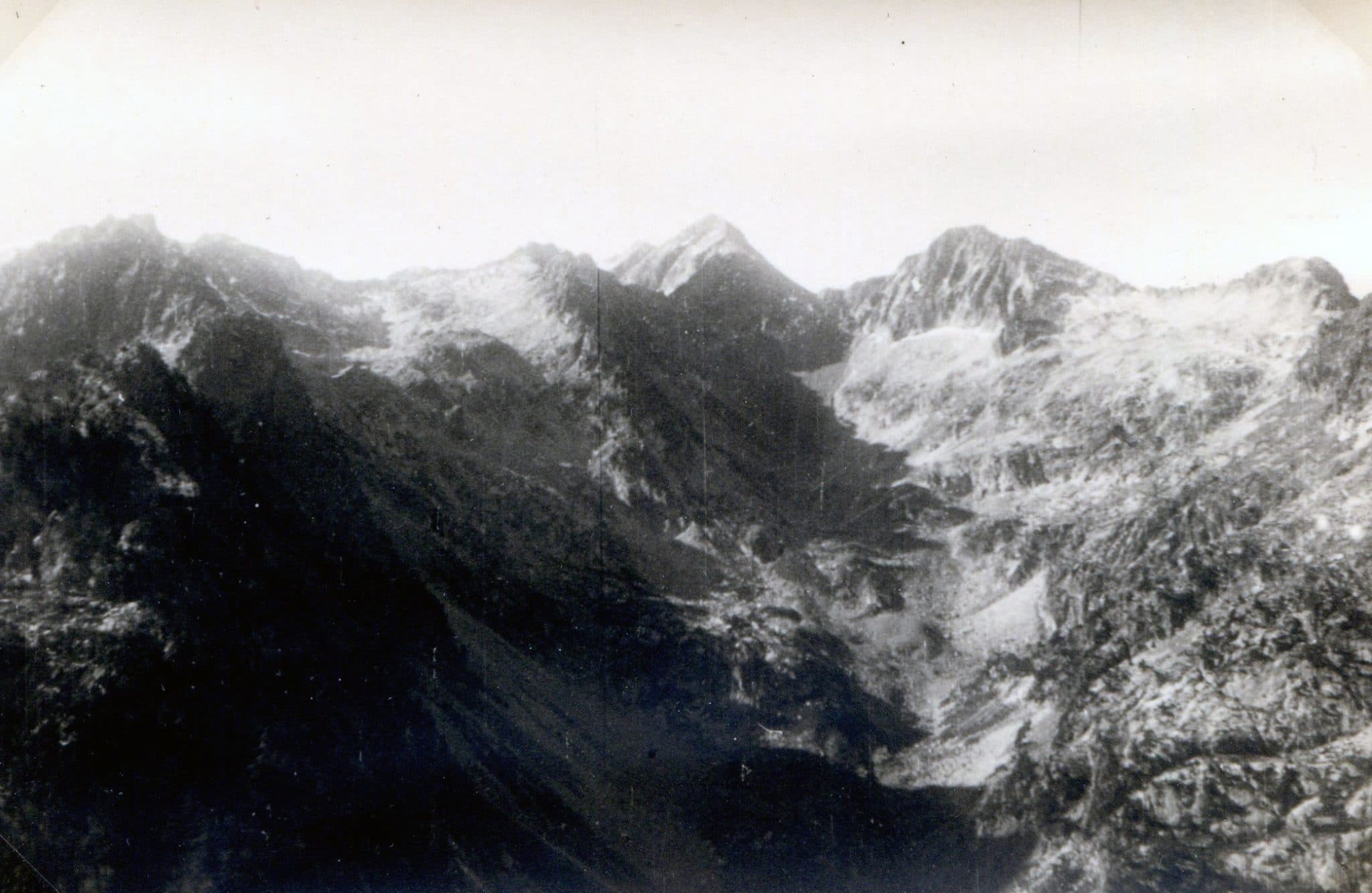 Je fais une halte au sommet de la côte et quelques victuailles sont les bienvenues. Je mange heureux de contempler de plus près ces sommets qui maintenant se montrent dénudés et fiers dans le soleil couchant. Le lac de Gaube ne dois plus être bien loin, en route ! Un kilomètre de montagnes russes sans grande fatigue m’y conduit : dans une vaste dépression je le devine, puis l’aperçois d’un bleu-vert laiteux enserré de sommet de plus de 2 000m boisés et verdoyants ou peureux et désolés suivant l’altitude. Au fond, le glacier du Vignemal parait narguer le soleil de sa neige qui ne fond jamais. Je camperai ce soir en vue des neiges éternelles : comment dépeindre mon émotion…