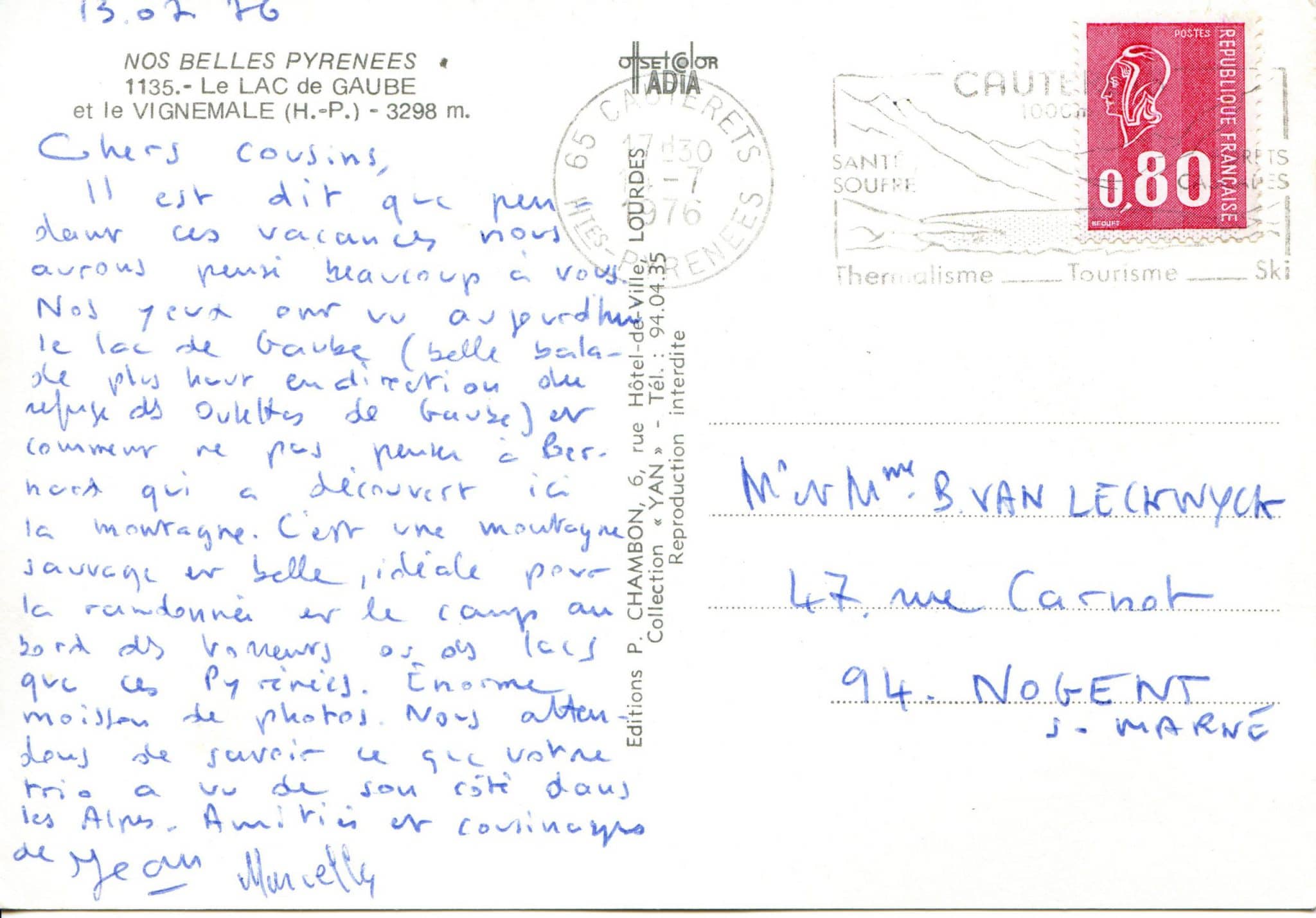 A Cauterets, je fais quelques provisions et achète des cartes postales représentant les coins que j’espère visiter. Mentalement, j’écris déjà à mes amis : voilà où je campe ! C’est vendre la peau de l’ours avant de l’avoir tué mais je suis si plein d’enthousiasme !