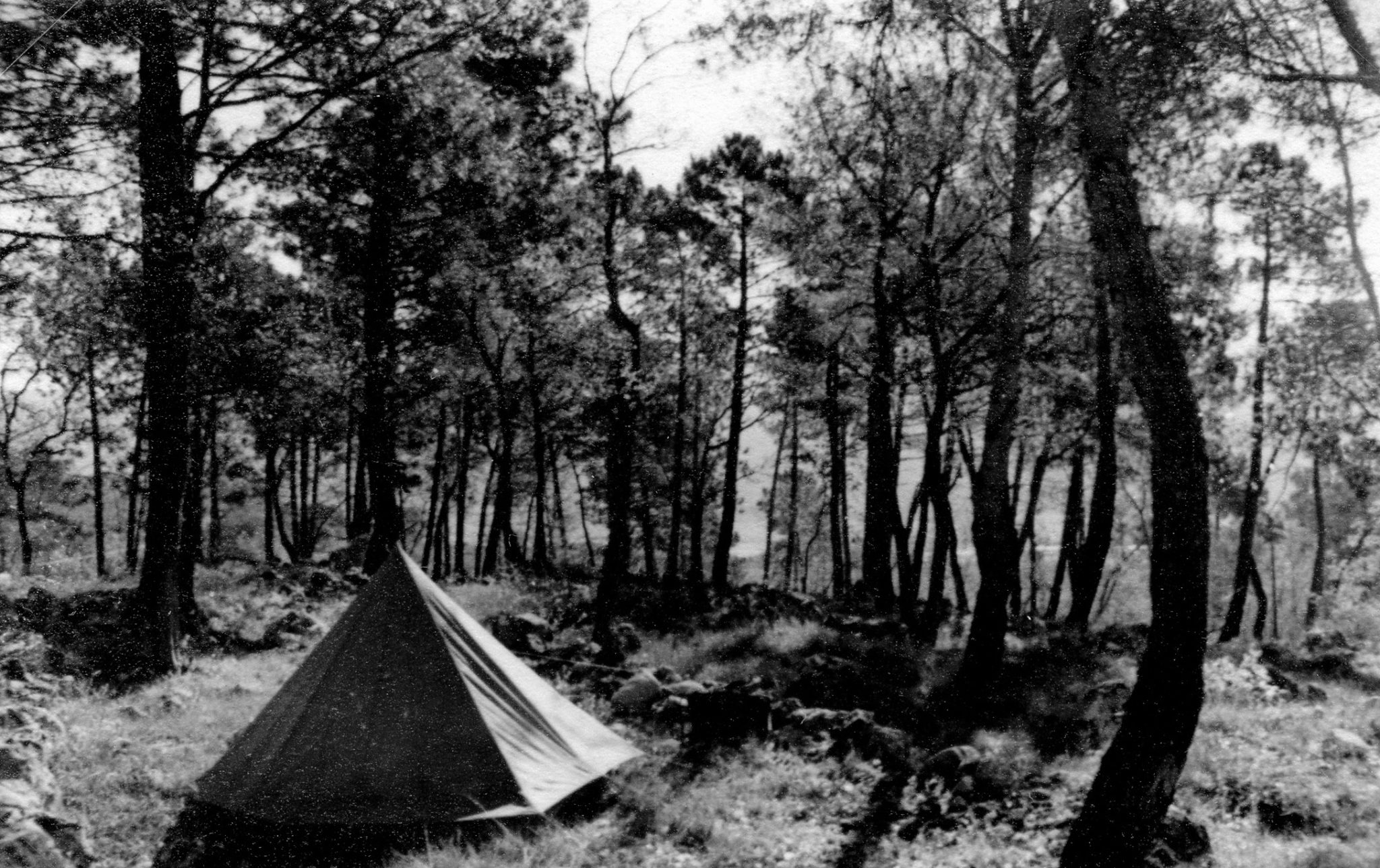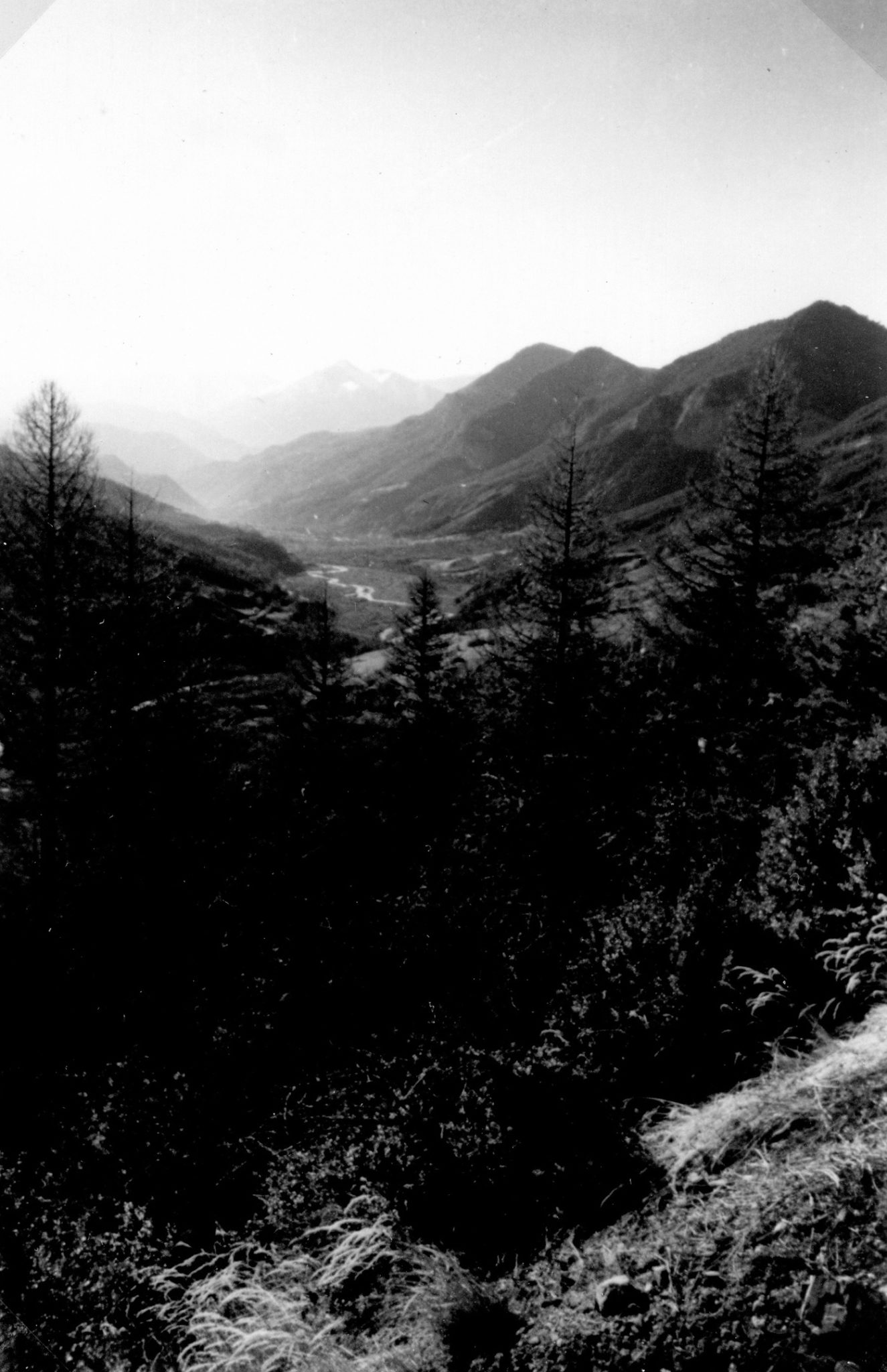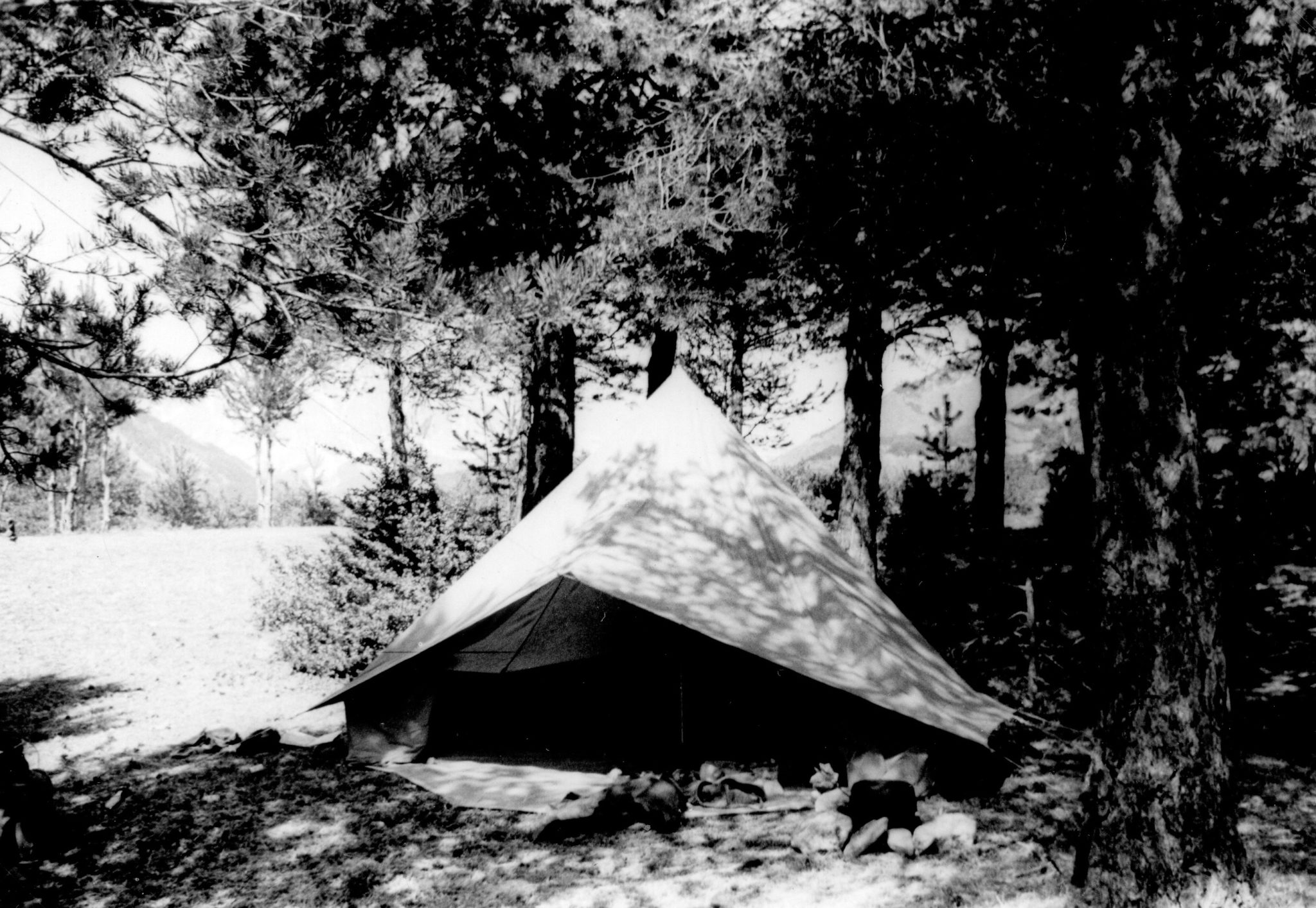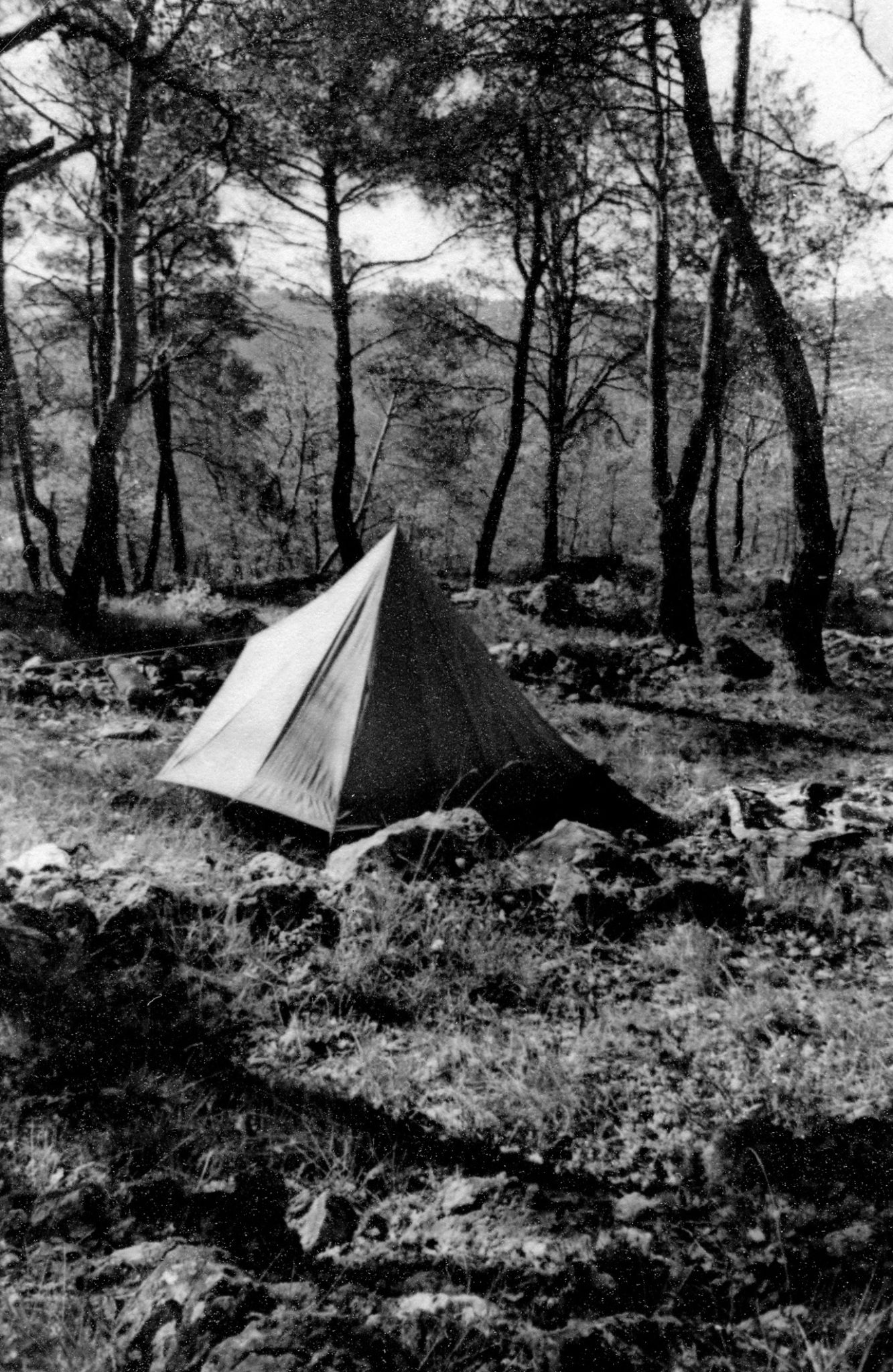 Puis je pars à la recherche d’un camp qui ne pourra être que de secours car ici c’est la Côte d’Azur et il ne faut pas demander l’impossible ! Je longe la mer rempli de la nostalgie de mes beaux camps montagnards. Un terrain vague m’offre ses possibilités de camp. Quelle déchéance ! Un champ de course en cours d’établissement me fait moins horreur car il conserve des arbres majestueux et il est plus à l’écart, mais une solide barrière le protège. Le chef contremaître duquel je sollicite une autorisation me répond aimablement mais négativement. Où aller sans déchoir ? La ville est dominée par des collines boisées : voyons là-haut.