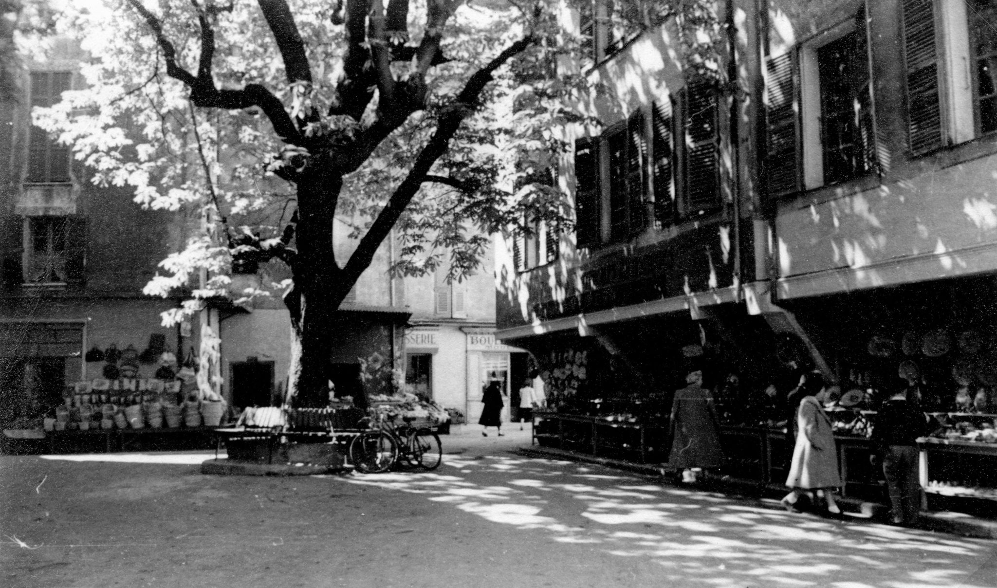Après une rapide traversée de St-Paul la sophistiqué où tout parait décors de cinéma à force de vouloir être trop pittoresquement campagnard et médiéval (combien de boutiques d’antiquaires et comme partout on sent l’exploitation du touriste), je descends dans des cultures écrasées de soleil. Un petit bois de bambous offre un curieux aspect exotique puis ce sont des jardins de maraichers, des cabanons. La côté est proche et le pittoresque vrai disparaît. Voici Cagues dont la ville haute me regarde passer du haut de son rocher et après bien des détours pour la joindre, la Mer.