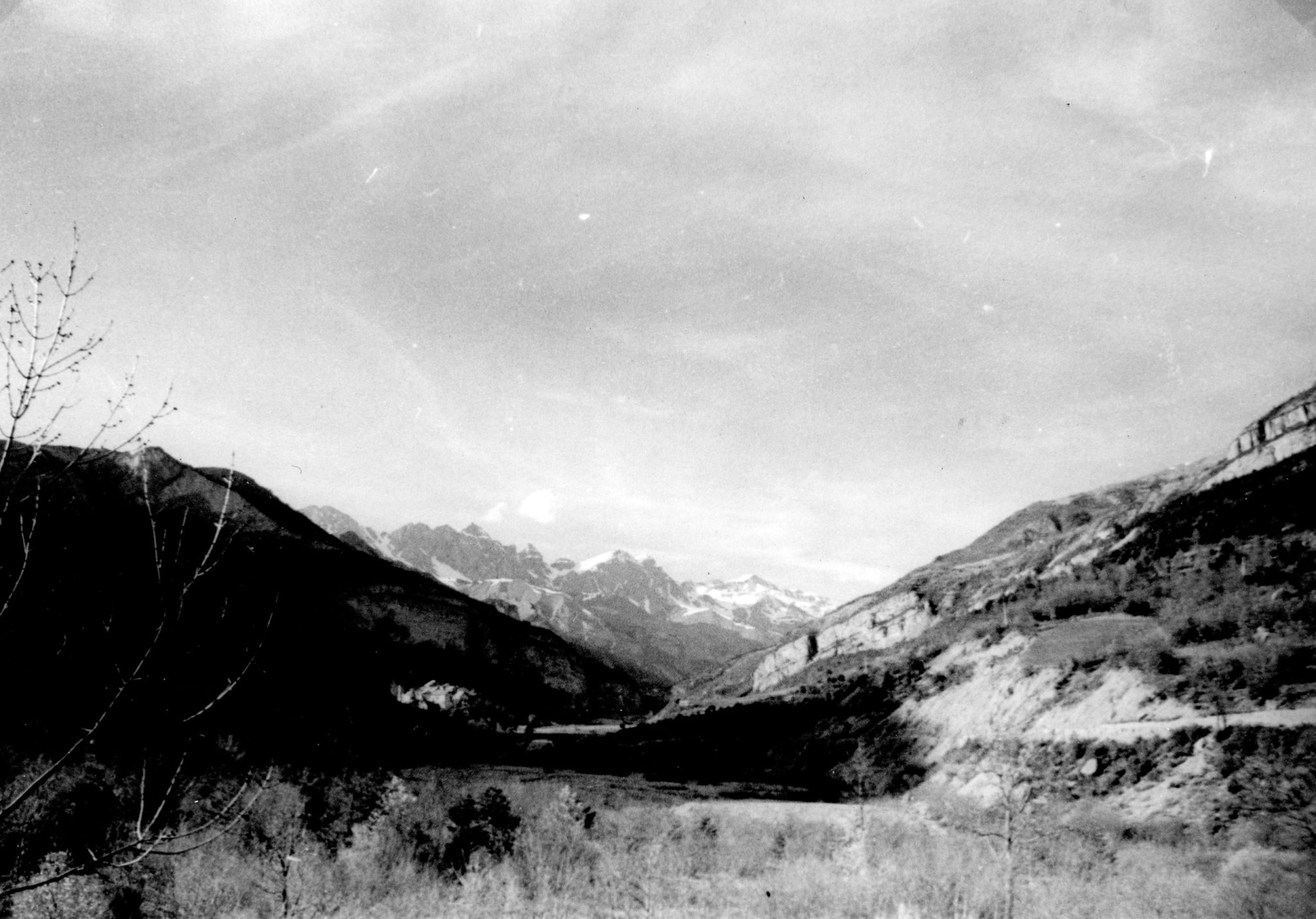 Les Basses Gorges du Var sont presque aussi impressionnantes que celles du cours supérieur, mais la route qui en suit le fond est actuellement sillonnée par de nombreuses autos et cars retour d’excursions. Un véhicule s’arrête spontanément et son conducteur me propose de me charger. Pendant que je décline son offre en remerciant, un autre automobiliste, moins courtois, passe en trombe (pour ne pas gâcher sa moyenne en ralentissant, peut-être ! Dans un coin pareil !). Le coup passa si près que le chapeau tomba… Non, mais assez près pour bousculer mon sac. Si j’avais un P.M et un chargeur en voici un qui y aurait droit !