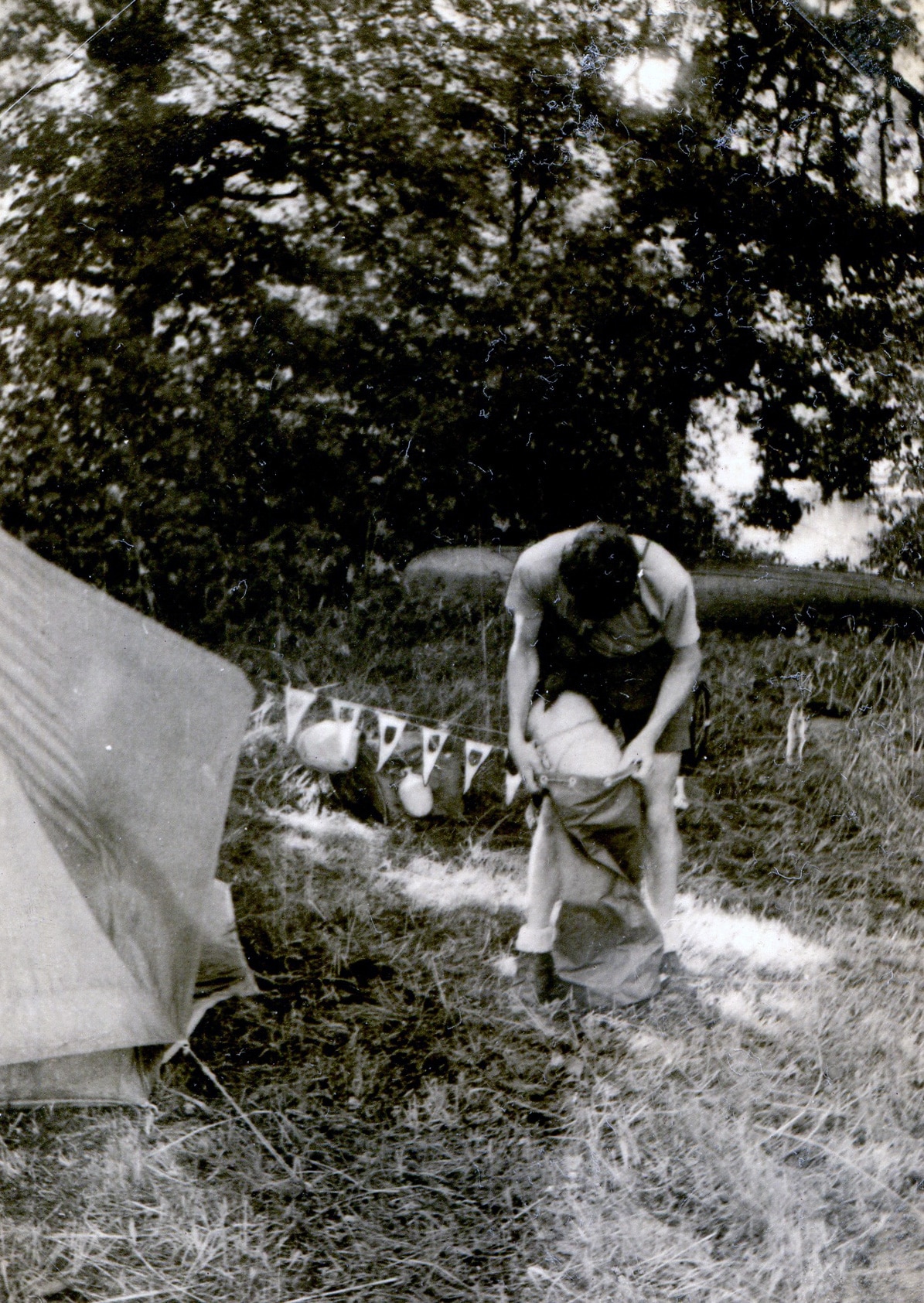 Je vais chercher du lait à une ferme proche, puis, pendant que Jean s’occupe du reste, je pars garer la voiture à Pont d’Ouilly. Là, je complète notre ravitaillement, et rentre à pied au camp qui n’est qu’à un ou deux kilomètres de la localité.