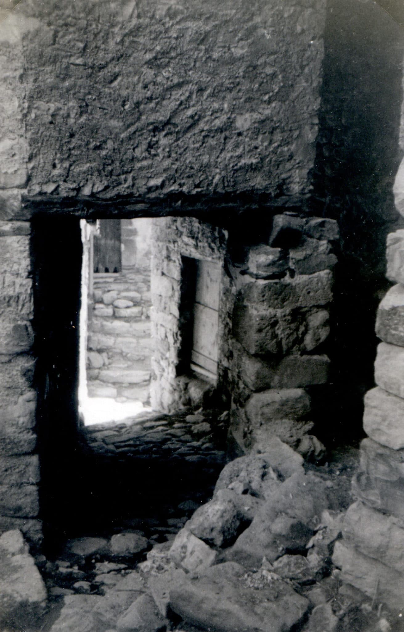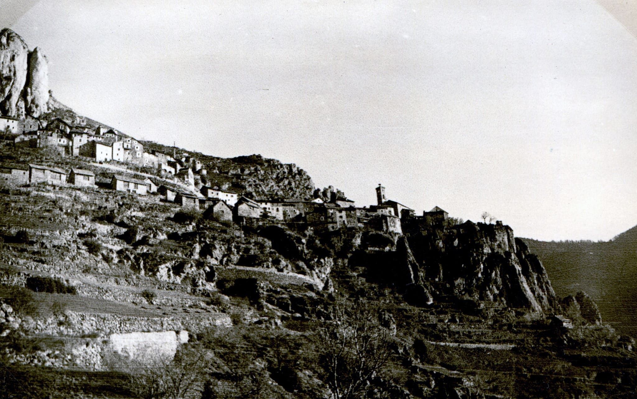 Je continue la route jusqu’à une pancarte indiquant « Auvare » mais derrière le vide ! La route en corniche fait un coude brusque et derrière voici quelques maisons vieillottes serrées frileusement autour de la route qui finit là. Le ciel maintenant gris et couvert accentue encore l’impression de Village de Bout du Monde. Des femmes lavent à une fontaine et m’indiquent où je pourrais trouver du pain. Quelques pas en arrière, monter cette cote et à tous les saints en général, une jeune fille est justement en train de pétrir de la pâte. Elle me cède une livre de brignolet.