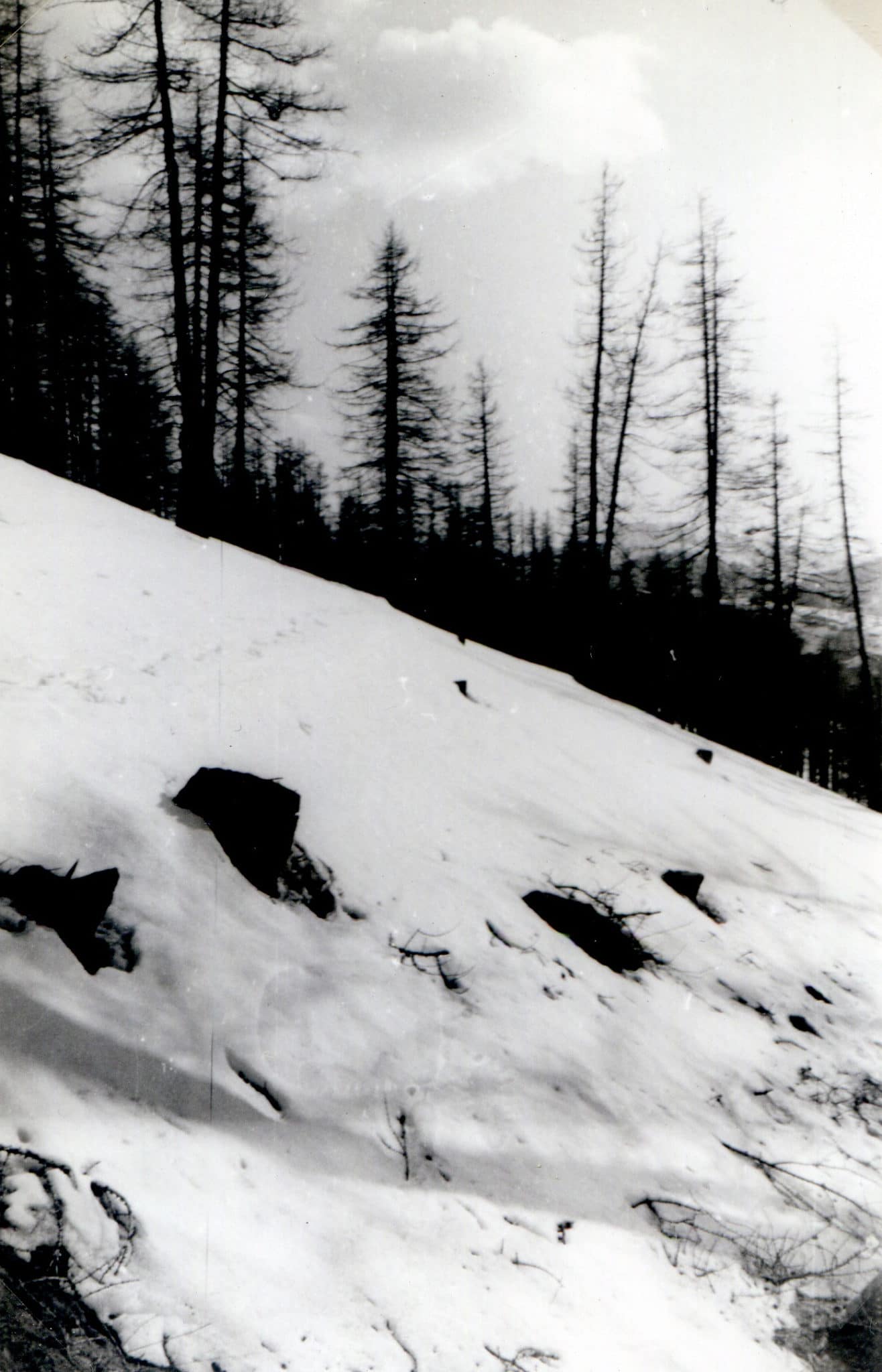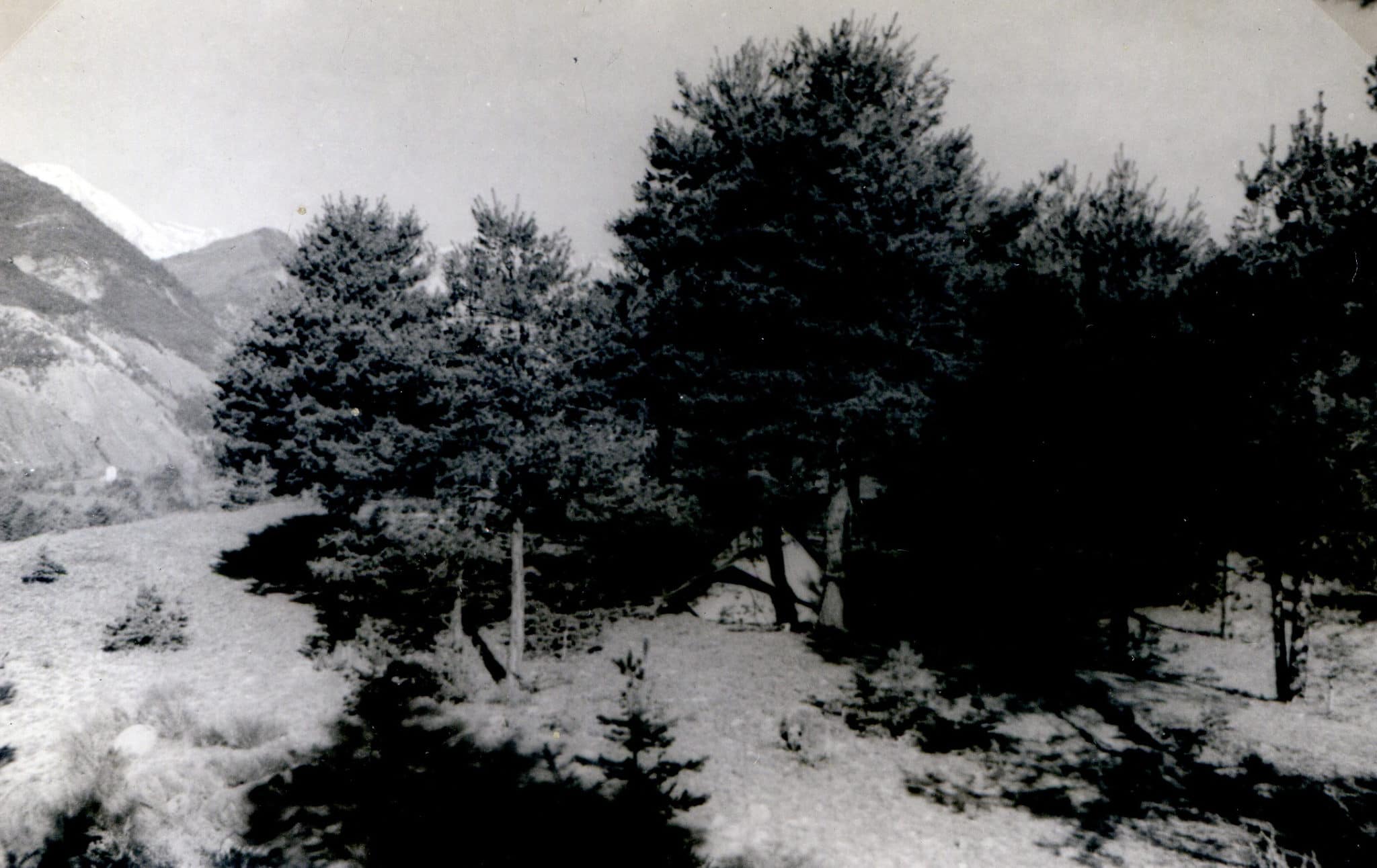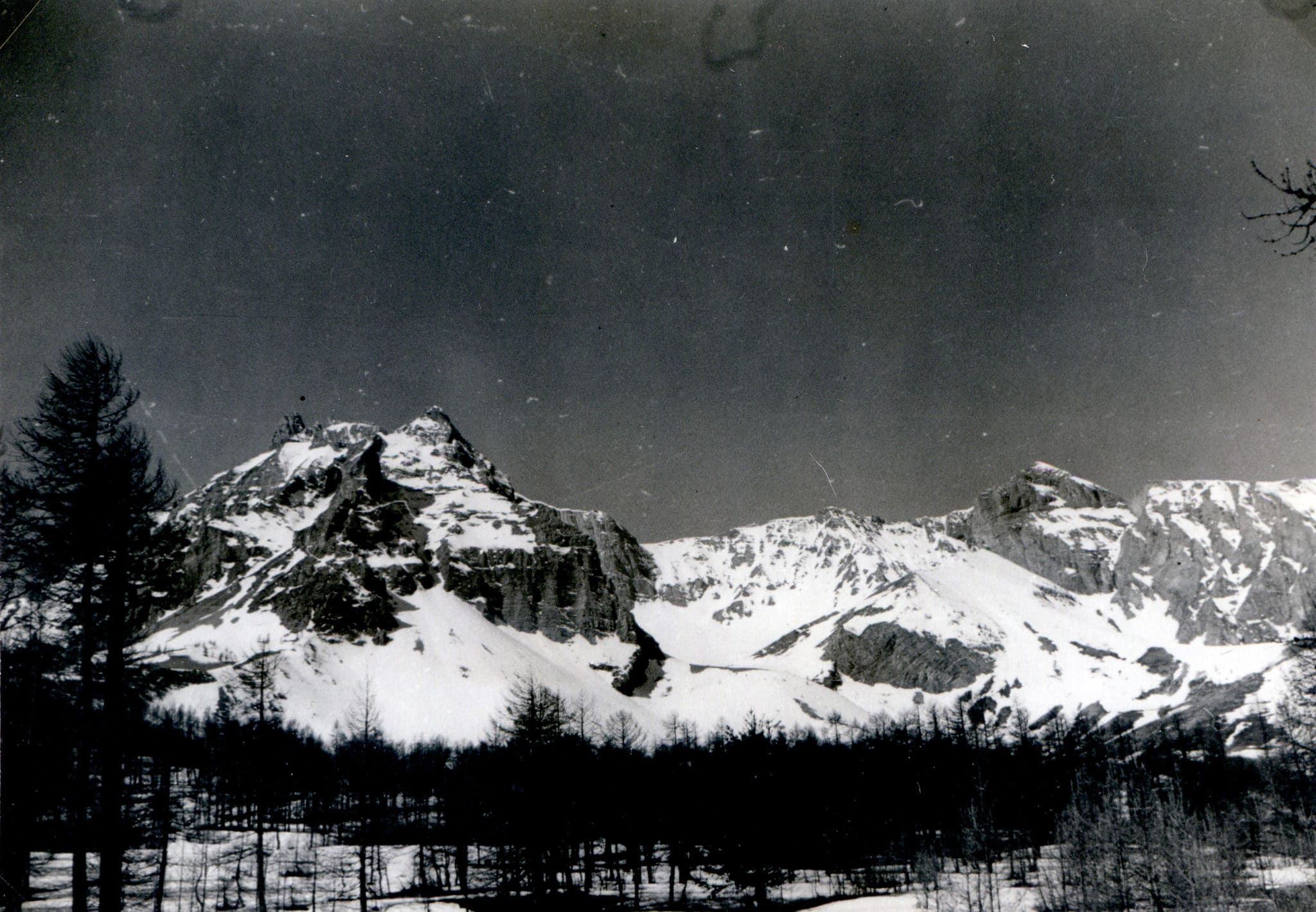 Je chemine sur une crête d’où l’on jouit d’une vue très étendue sur les vallées du Var à droite et du Monnard à gauche et voici la neige qui reparait. Je fais halte sur un plateau que borde à l’Ouest la forêt du Désert et de cet endroit d’où j’ai une assez bonne vue sur le col j’étudie l’itinéraire en cassant la croûte.