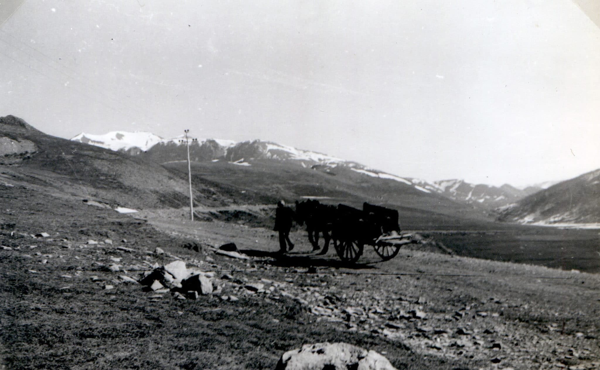 Il est près de 14 heures quand je trouve un coin assez loin de la ville pour y être tranquille et dans un cadre agréable pour déjeuner. Mais que l’ombre est rare ! Quelques nuages bienvenus tempèrent par moment l’ardeur du soleil. Après manger, je laisse passer le plus gros de la chaleur en écrivant un peu de courrier, puis départ pour le lac de Beuil, prochain objectif. Aux Larmes, deux muletiers avec leurs bêtes constituent une photo de choix, hélas ils s’aperçoivent que je vais les photographier : ils prennent aussitôt des poses dites avantageuses qui retirent tout intérêt au cliché.