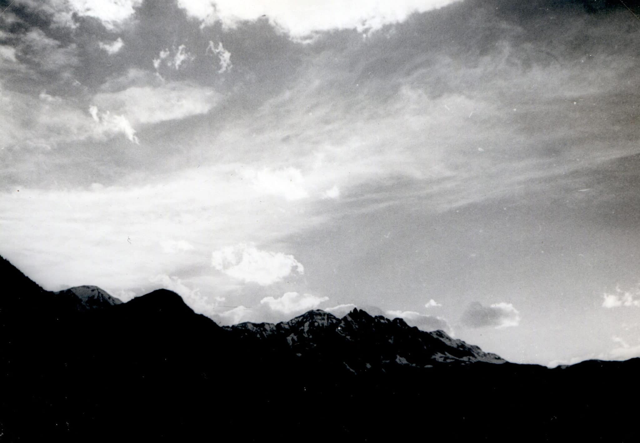Je suis maintenant au pied des Aiguilles de Paleus, la montagne à profil de chauve-souris que j’admirais avant-hier soir à l’horizon et là-haut le vent doit souffler ferme à en juger par les écharpes de neige s’envolant aux sommets déchiquetés.