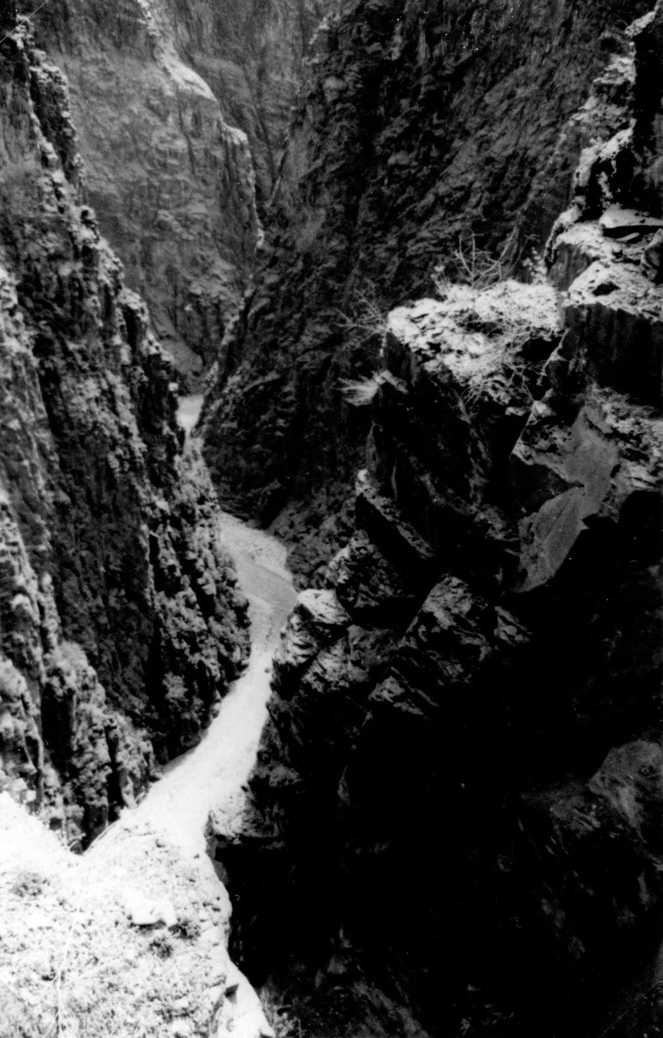 Je monte encore dans la neige de plus en plus profonde. Bien que ma route soit bien tracée il me faut bientôt capitulez car j’ai encore plus de 300m de dénivelé à franchir et déjà la neige me vient jusqu’aux cuisses. Il y a encore une huitaine de km. dans la neige et l’autre versant comporte des à-pics enneigés. Seul, la partie est trop dangereuse pour être tenté à cette époque surtout avec la hauteur de neige de cette année. Je suis donc contraint à faire demi-tour ce que je fais la mort dans l’âme, mais continuer serait un quasi suicide.