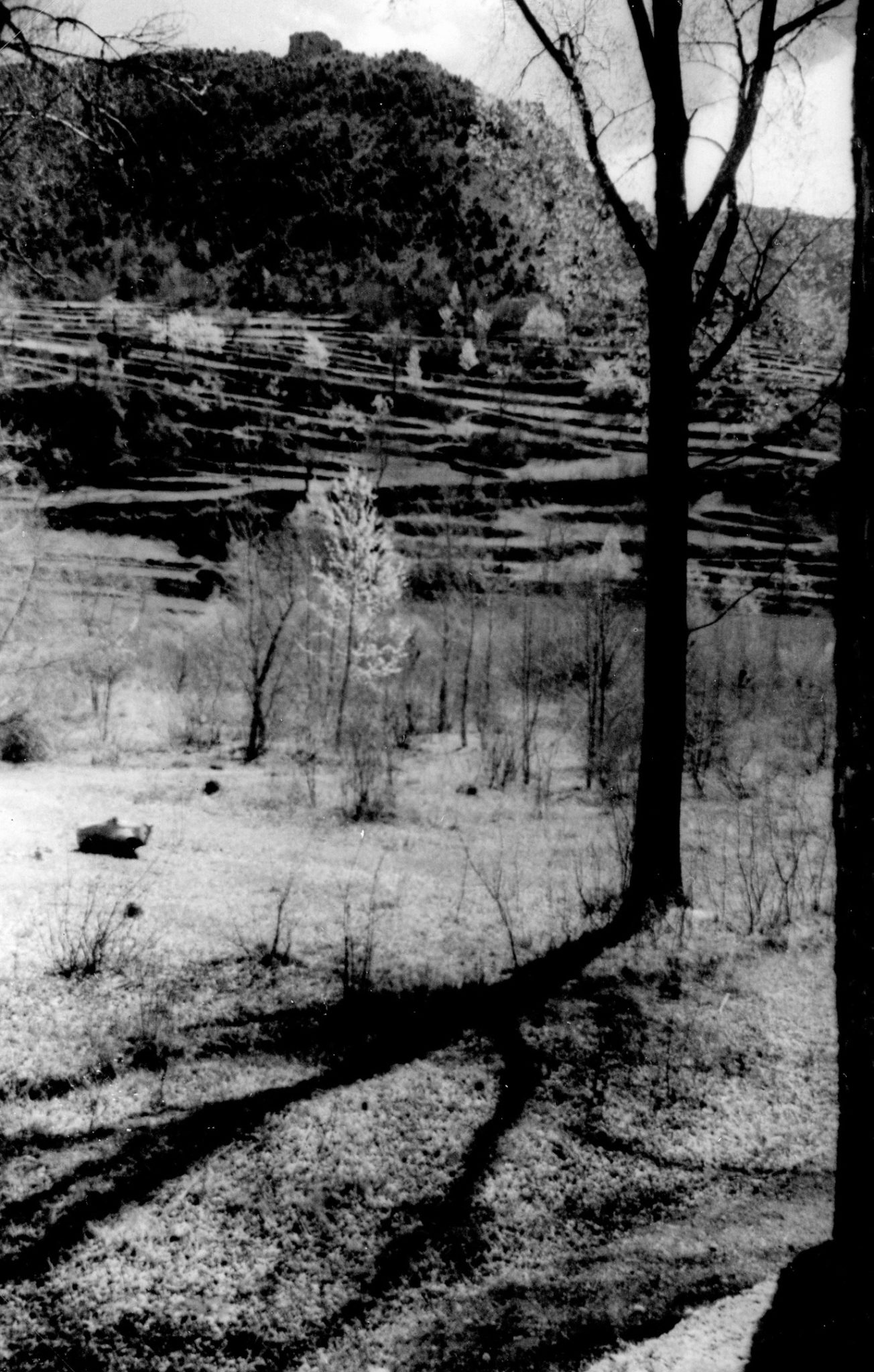 Ce matin beau temps : tout naturel, n’est-ce pas, la Provence n’est-elle pas le pays du soleil ? Laissant à regret mon si beau camp, je pars vers Roubion où je fais provision d’eau. Pittoresque village dont j’aurais pourtant peu de souvenirs photographiques car Foca me joue des tours et la grande vide que j’improvise chambre noire pour réparer mon engin n’est pas assez sombre : film voilé.